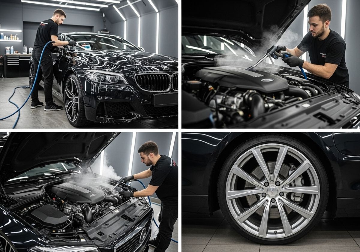 Engine Detailing: Cleaning and degreasing the engine bay to remove built-up grime and oil, improving the engine's appearance and helping to identify potential issues.